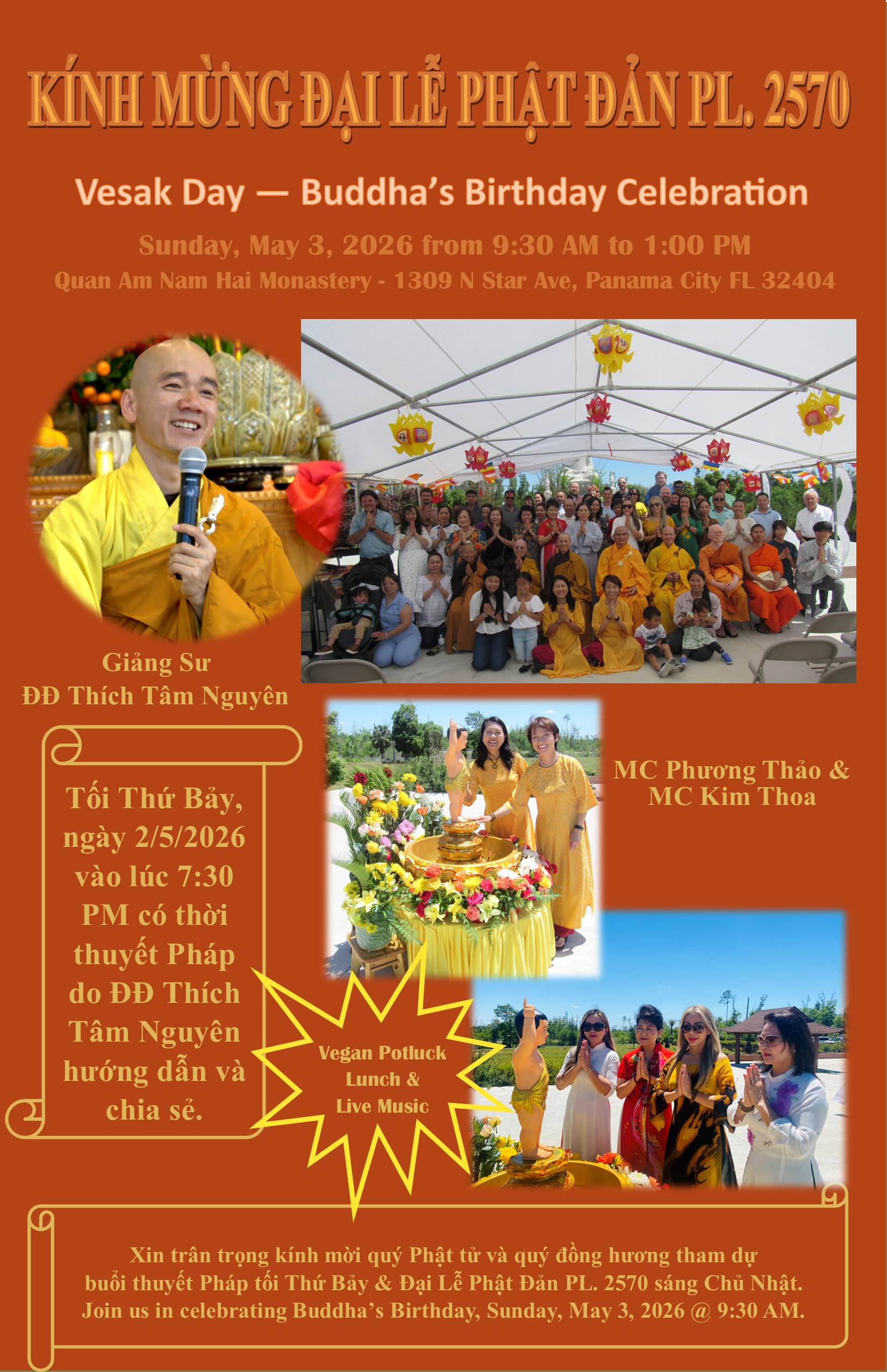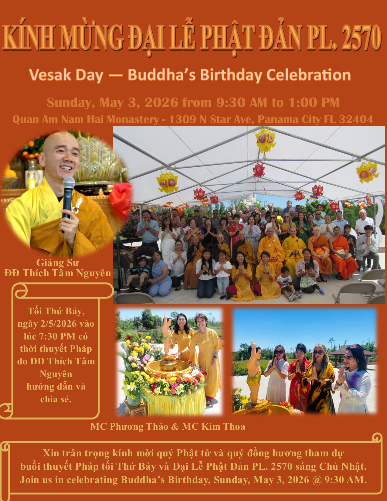 Note: Please check Yearly Calendar for the upcoming events. Xin vui lòng nhấn vào đây để biết các sinh hoạt hằng tháng tại Tu Viện.